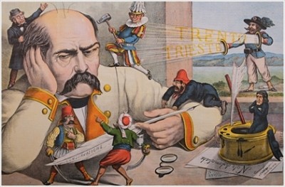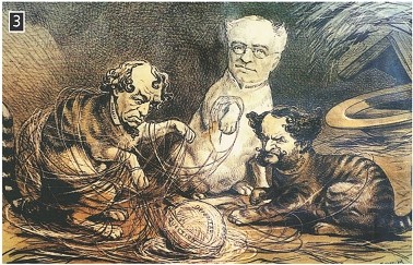 Γελοιογραφία για την εμπλοκή των 3 μεγάλων δυνάμεων στο Ανατολικό Ζήτημα