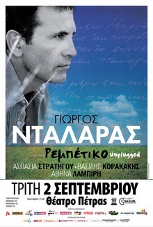 Μετά από μια μεγάλη και πολύ επιτυχημένη Ευρωπαϊκή περιοδεία με το Rembetiko «Unplugged» και σε συνέχεια της πολύ επιτυχημένης sold out συναυλίας στον Κήπο του Μεγάρου Μουσικής Αθηνών τον Ιούλιο, ο Γιώργος Νταλάρας παρουσιάζει την Τρίτη 2 Σεπτεμβρίου στο Θέατρο Πέτρας στη Πετρούπολη την μοναδική αυτή παράσταση, ένα μεγάλο μουσικό ταξίδι - αφιέρωμα στο ρεμπέτικο.