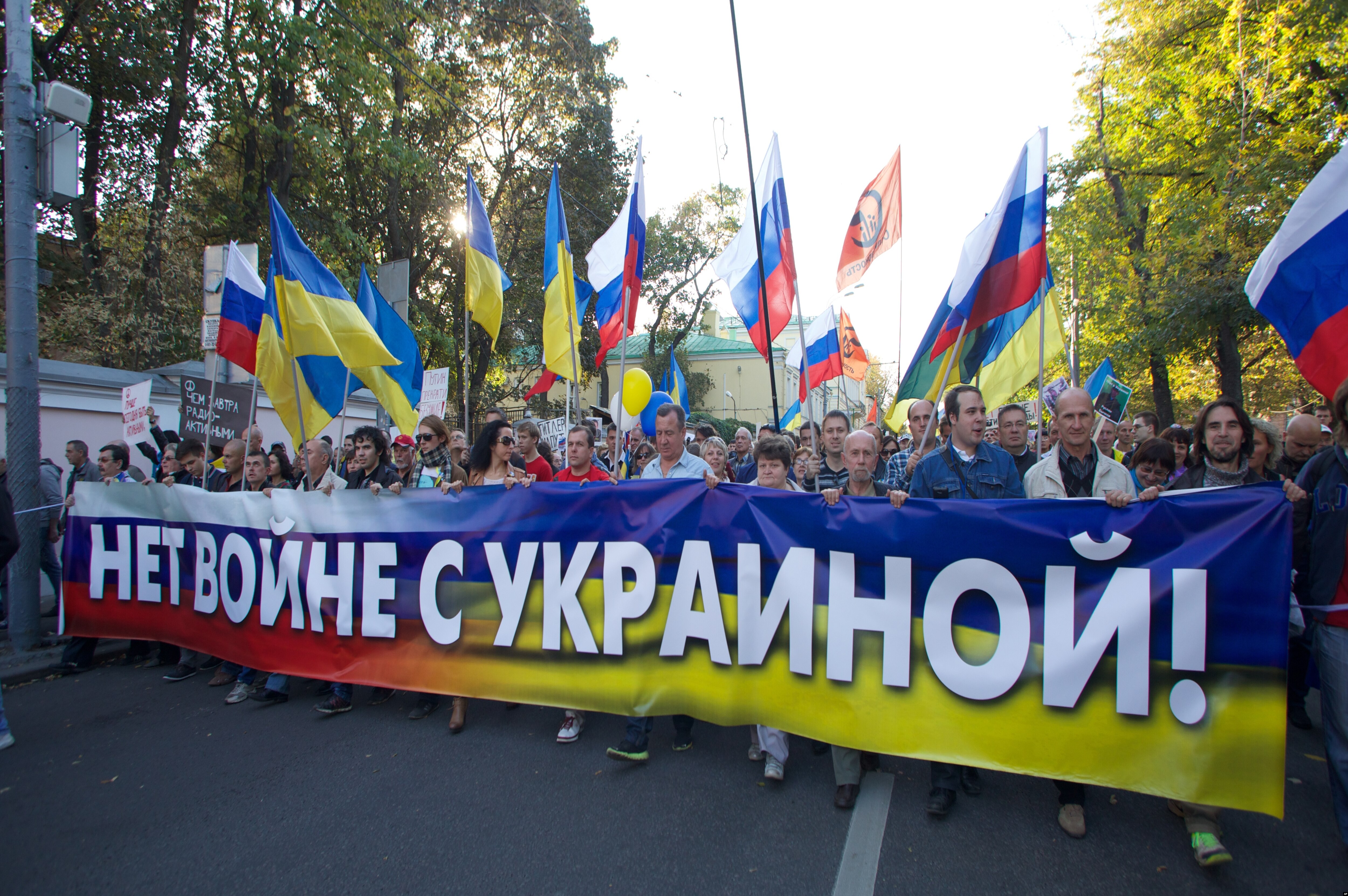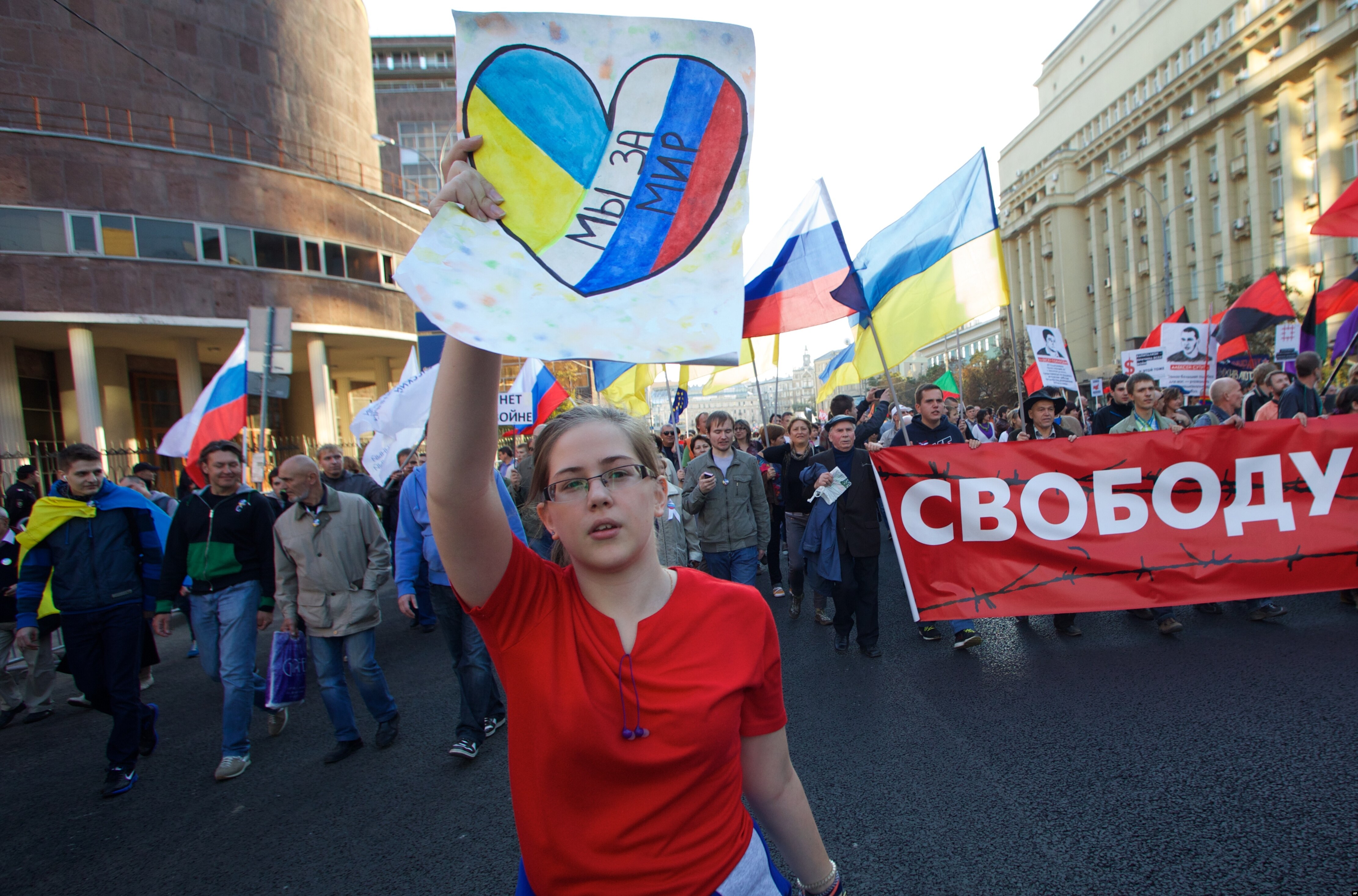 Opposition activists and anti-war demonstrators marched in the Russian capital Sunday, urging peace in Ukraine and an end to Russia's military support for separatists, even though the Kremlin denies backing the rebels.